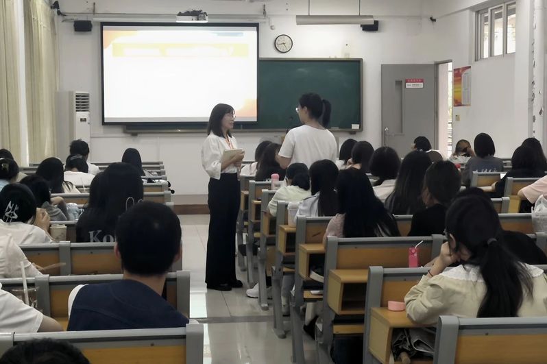 宣讲会上,主持人通过讲解PPT的方式详细介绍了公司情况,内容涵盖公司发展概况、社保福利、培训机制、薪酬待遇等,重点解读了其招聘岗位及面试流程。宣讲会结束后学生们积极参加笔试,争取加入福州九色鹿培训学校的宝贵机会。