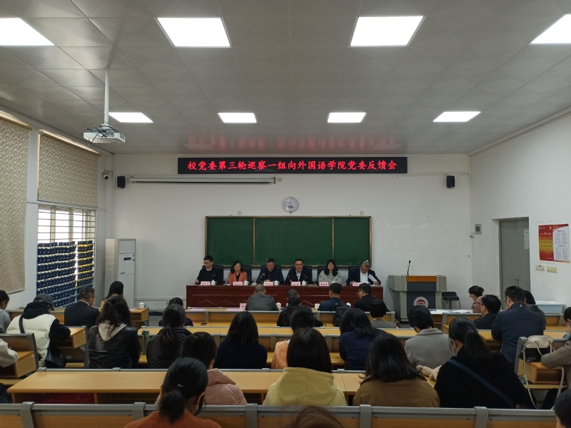 校党委巡察一组副组长胡秋娇及有关同志,纪委综合室、巡察办、组织部有关同志,外国语学院党委领导班子成员及相关同志、师生代表出席会议。