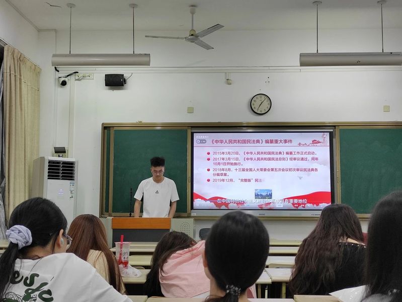 2025年5月18日,外国语学院组织各班级开展“美好生活·民法典相伴”主题班会。本次班会由各班宣传委员主持,全体在校学生参加。