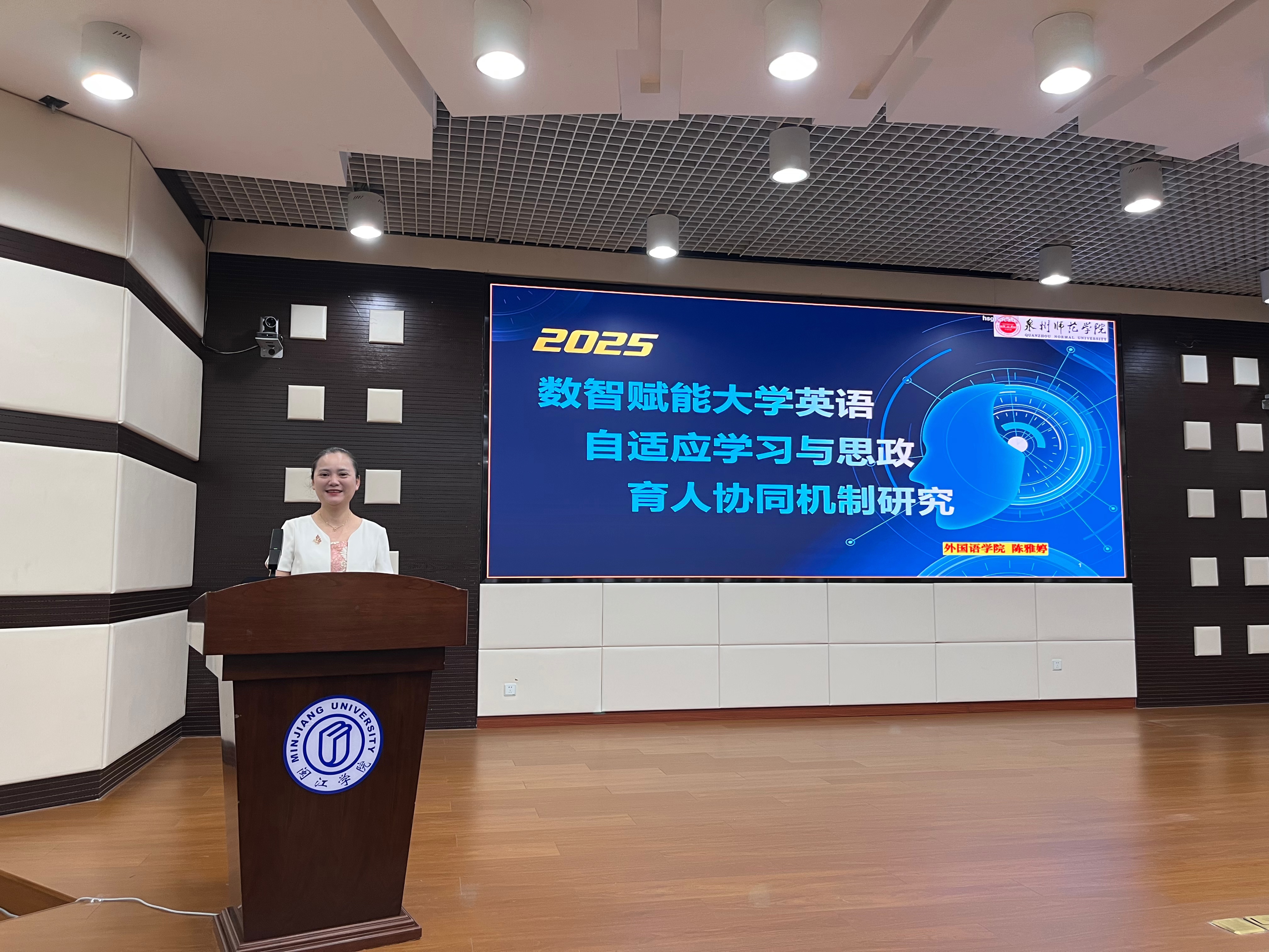 本次年会吸引了浙江大学、厦门大学、上海外国语大学、郑州大学、福州大学、福建师范大学等 30 余所省内外知名高校的近百位专家学者齐聚,共同探讨 AI 时代大学外语教育的改革与转型路径。在这场学术盛宴中,陈雅婷老师的研究成果成为会议焦点。她的论文依托人工智能、大数据等智能技术,创新性构建“语言学习 + 思政浸润”双轨驱动模式,实现教学与育人的双向赋能。论文提出的“课程思政元素智能嵌入策略”与“学习效果个性化评估体系”,精准破解外语教学中思政融合碎片化、学习适应性不足等行业难题,为语言类课程思政建设提供智能化解决方案,赢得与会专家与同仁的广泛认可。