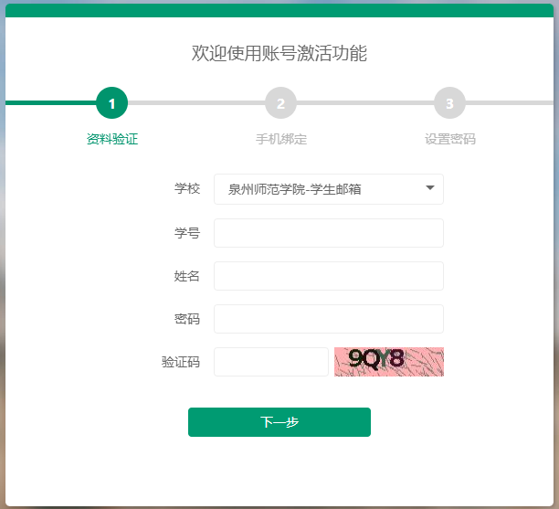 (3)按照引导验证相关信息,绑定手机、设置新密码和个性化邮箱名。