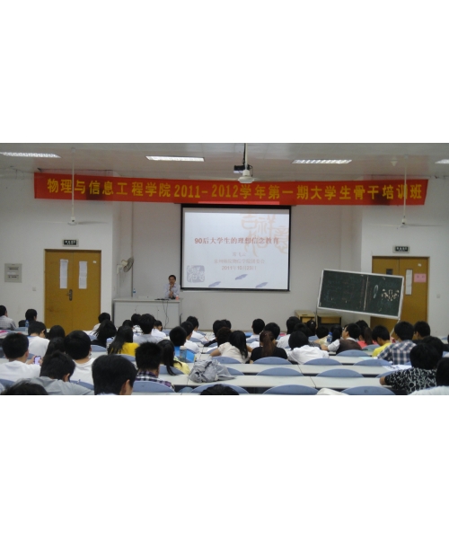 2011年10月23日晚8点,物信学院第一期大学生骨干培训班第五讲在理工楼218教室继续开讲,常飞云老师为同学们作《加强90后大学生理想信念教育》的讲座。