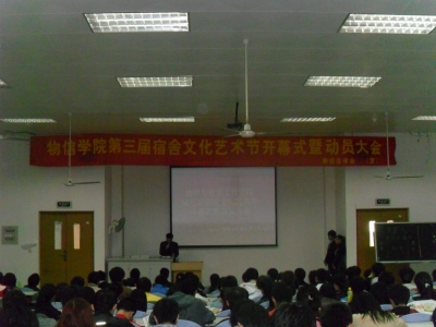 3月15日下午4点,我院第三届宿舍文化艺术节开幕式在理工楼218教室隆重举行。莅临活动的现场有党总支书记陈晏辉老师、各专业辅导员老师、自律会前任主席、自律会现任主席、两委会主席、全体11级新生及10级宿舍舍长。