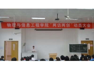 4月26日下午,经过前期充分的酝酿和准备,物理与信息工程学院在理工楼多媒体教室召开“两访两创”活动动员大会,学院全体教职工、部分学生党员干部参加了会议。会议由学院党总支书记陈晏辉主持。