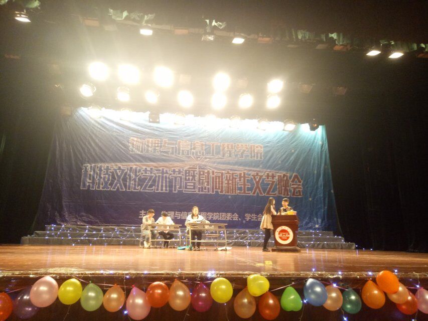 一场如火焰般热烈的开场舞《Fire》带动了晚会现场的气氛,紧接着,主持人姜楠、张炜玉、赖嵩宇、胡镇川正式宣布晚会正式开始。2016级电子信息科学与技术专业的同学们带来独树一帜的舞蹈《咋了PPAP》,让观众感受到同学们对此次晚会的热情与付出。小品《我恋爱了》、《四大才子》以及《唐朝美人》演绎出了不同时代的恋爱风尚。印度舞《印度舞之亮眼睛》、古典舞《敦煌飞天》及现代舞《Bar and Crush》在视觉上展现出千姿百态的美,引起同学们欢呼雀跃。别具匠心的相声《学富五车》和幽默通俗的《恶搞新闻》,幽默风趣,令人捧腹大笑。欢乐的时光总是显得那么短暂,最后,晚会在我院青年志愿者协会的手语表演《仰望星空》中完美落幕。