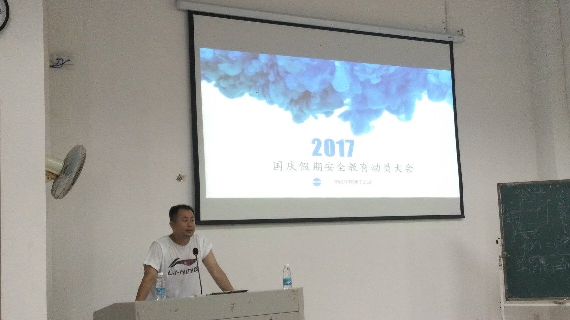 9月28日下午2:30,我院在理工楼218教室召开了国庆假期学生安全教育大会,我院各专业辅导员、2017级全体新生参加了大会。此次大会由院学生科负责人林端民老师主持,旨在增强学生的安全防范能力,提高学生安全防范意识,确保国庆期间学生的安全。