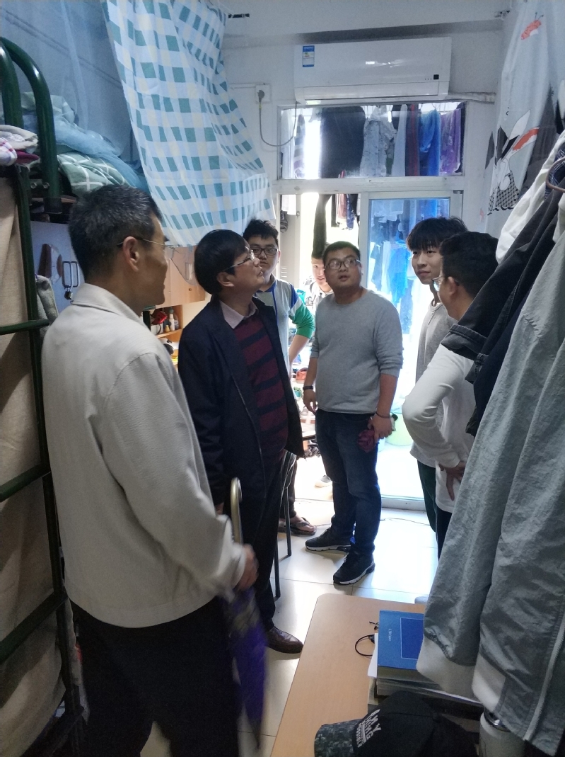 为扎实推进文明校园和平安校园创建工作,加强学生宿舍日常监督管理,4月16日下午三点半,我院院长杨惠山、党委书记陈晏辉率学工办辅导员一行走访学生宿舍。