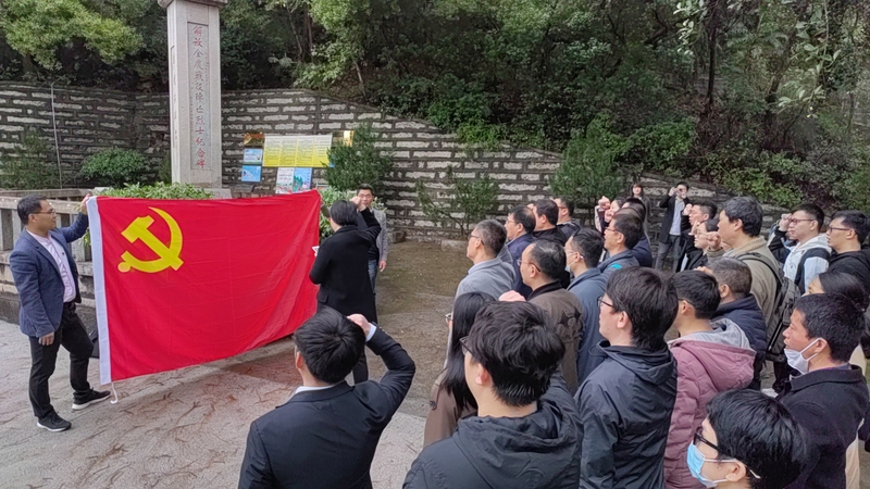一行人来到惠安县解放金厦战役阵亡烈士纪念碑前,聆听工作人员介绍相关历史背景和革命先烈的英雄故事,并向纪念碑献花。在学院党委书记吴丽双带领下,全体党员高举右拳,重温入党誓词,铿锵有力的誓词让在场的全体党员重新检视入党初心,接受党性洗礼。