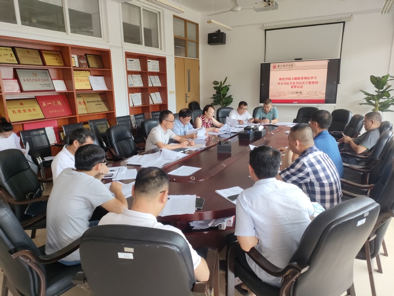为深入学习贯彻习近平新时代中国特色社会主义思想主题教育,推动学习往深里走、往实里走、往心里走,2023年7月11日上午,我院在理工208会议室召开主题教育专题学习会,学习习近平总书记关于教育的重要论述。学院党委书记吴丽双、院长杨惠山、党委副书记洪荣文、副院长陈木生,科室负责人、专业主任、党支部书记及支部委员参加。