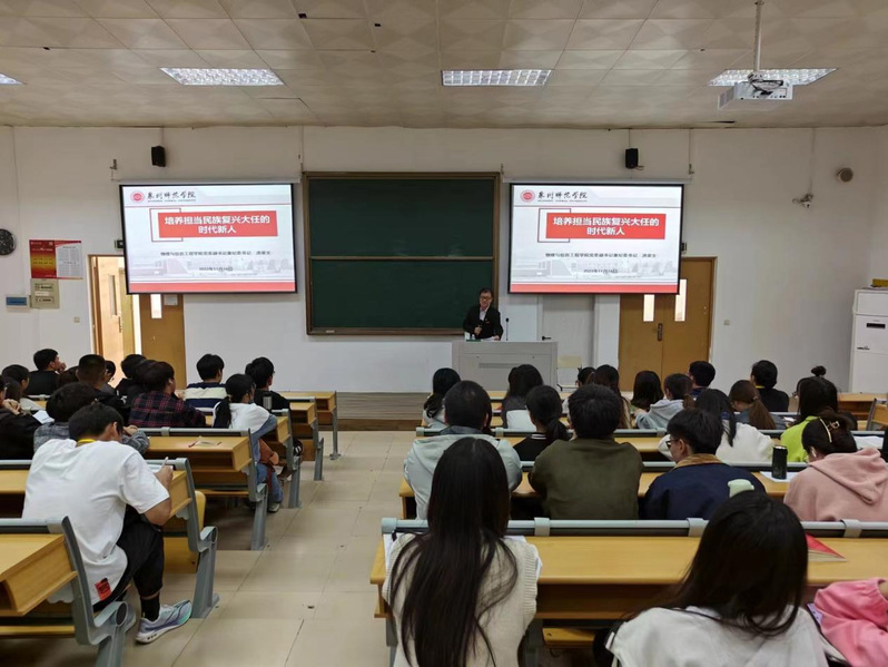 2023年11月16日下午,我院党委副书记兼纪委书记洪荣文在理工320教室为我院学生党员、团委、学生会、自律会学生干部上主题为“培养担当民族复兴大任的时代新人”的党课。