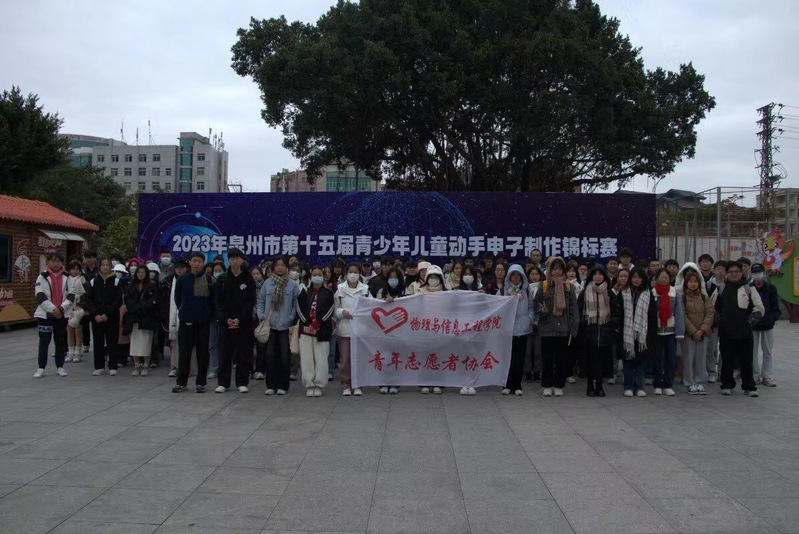 泉州市体育局、泉州市教育局主办的2023年泉州市第十五届青少年儿童动手电子制作大赛,2023年12月9日正式开始并于12月23日圆满落幕。物信学院学子全程担任大赛裁判志愿者,助力大赛圆满完成。