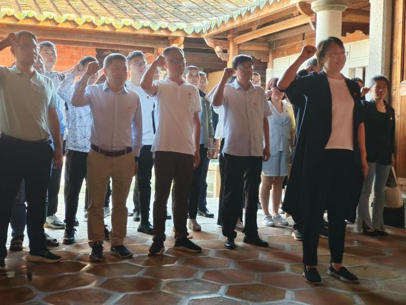 在讲解员的带领下,我院一行人先后参观中共泉州中心县委机关旧址和泉州革命斗争史展馆,观看珍贵的历史图片、革命文物和影像资料,聆听关于泉州革命斗争史的介绍,了解当年革命先辈浴血奋战的光辉事迹,深刻感受共产党人坚贞不渝的革命理想和百折不挠的英雄气概。随后,全体党员面向党旗,整齐列队,高举右拳,重温入党誓词,用铿锵有力的铮铮誓言,表明矢志不渝跟党走的崇高理想信念。