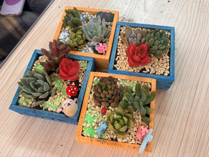 本环节以“园艺疗法”为主线,借由实际接触和使用园艺材料,引导同学们热爱生命,热爱大自然,让同学们了解到如何在与自然、植物的互动中疗愈身心,在耐心养护植物的过程中感受生活,获得精神上的愉悦与充实,强化心理健康意识与自我关爱,促进同学们的身心健康发展。