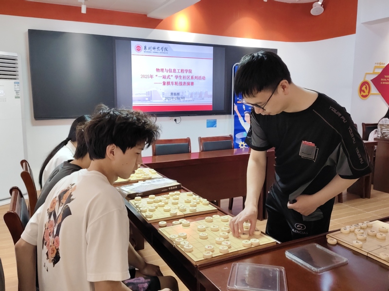 为弘扬中华传统文化,增添社区文化氛围,2025年4月17日下午,我院于学生宿舍C区13栋新时代大学生文明实践中心举办象棋车轮战表演赛。学院辅导员黄祖榜、各专业班级象棋爱好者共20人参加活动。