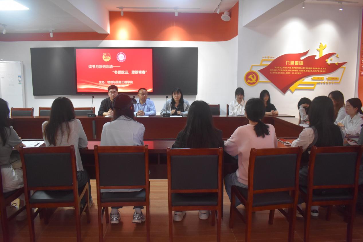 为营造书香校园、激发阅读热情,4月24日下午,物信学院在学生公寓C区13栋新时代大学生文明实践中心举办“书香致远,思辨青春”读书分享会。活动由辅导员潘雅婷主持,学院组织员赖鸿、辅导员董玄及各班30余名学生代表齐聚一堂,共赴书香之约。