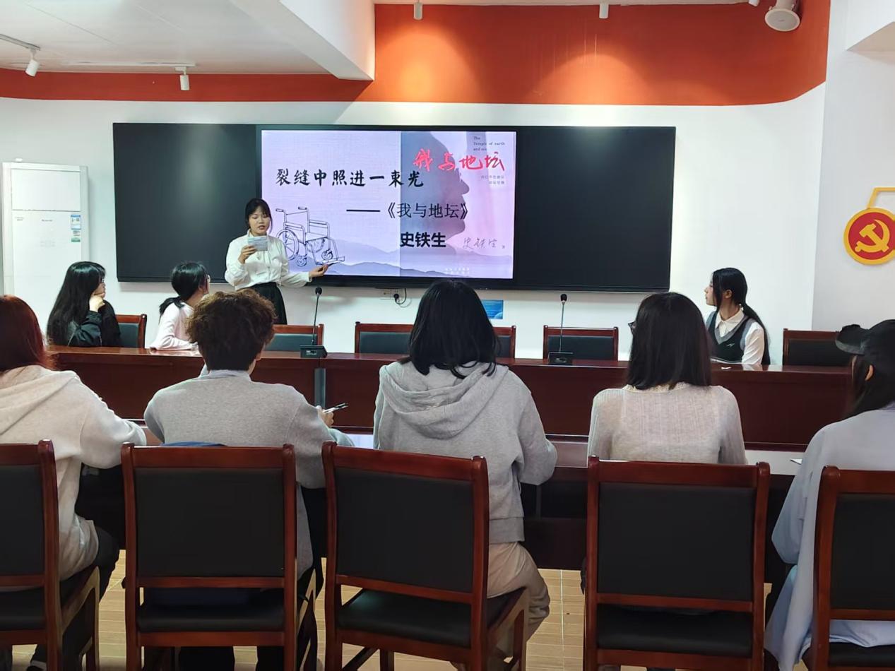 分享环节中,七位学生代表依次登台,以五分钟限时演讲展开思想碰撞。叶夏岩同学从史铁生《我与地坛》的轮椅辙印中,探寻生命的厚重哲思;王馨雅同学借《平凡的世界》的时代画卷,解读奋斗者逆境中的不屈品格;陈馨怡以《四世同堂》为镜,剖析战火年代知识分子的家国情怀。另有四位同学结合《白鹿原》《活着》《要塞》《三国演义》等经典,从社会学、历史学视角切入,展开激烈思辨。现场观点交锋不断,掌声此起彼伏,尽显物信学子对经典的深度思考与蓬勃朝气。