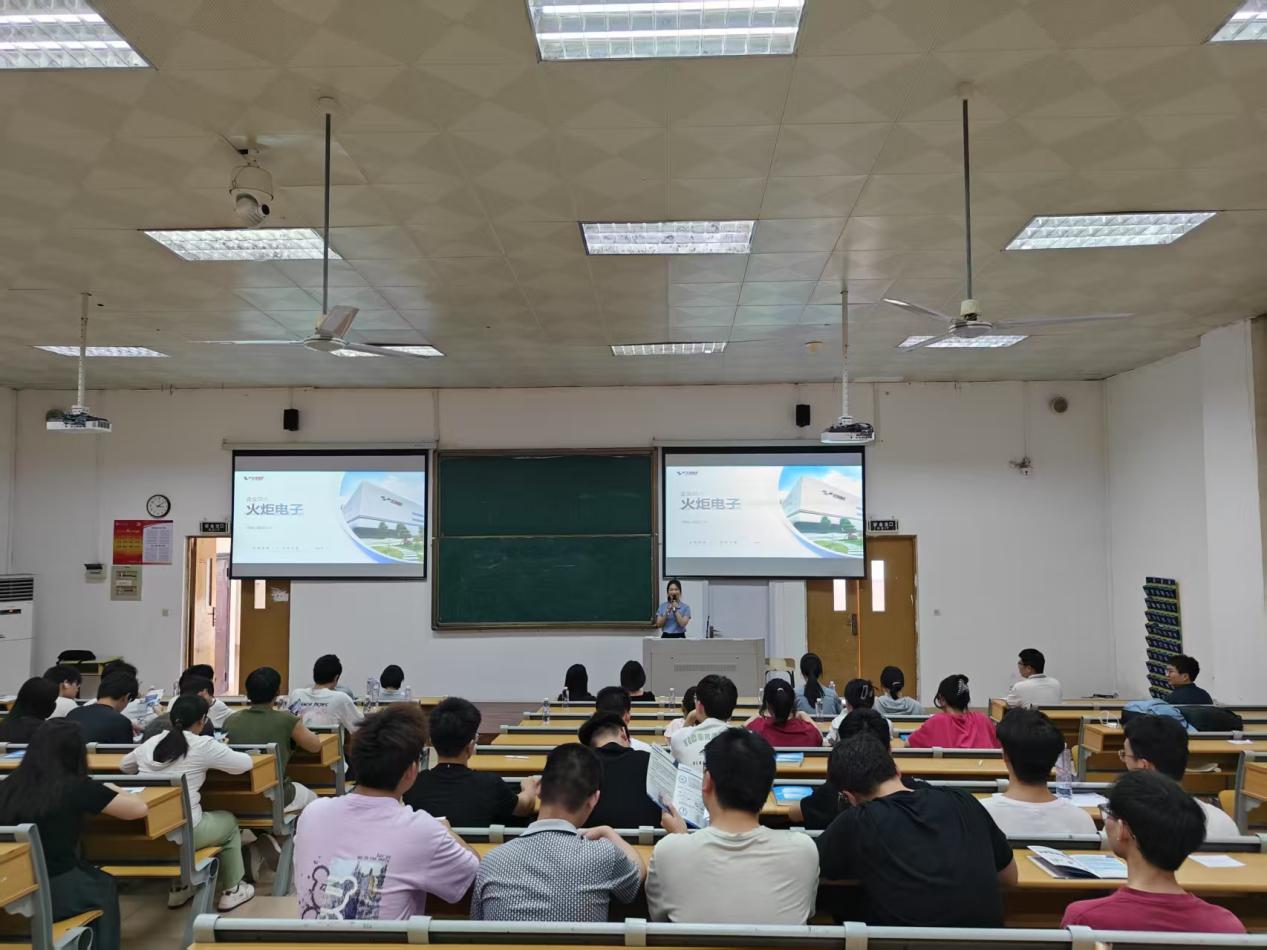 宣讲会现场,三家企业通过视频展示、PPT讲解等形式,系统介绍了半导体产业链发展趋势、企业核心技术优势及人才培育体系。福建火炬电子重点推介了芯片研发与工艺工程师岗位的成长路径;福建天电光电聚焦封装测试领域,提出“技术+管理”双通道培养计划;胜科纳米则分享了集成电路失效分析领域的前沿技术及全球化职业发展平台。各企业负责人还详细解读了工作待遇、岗位晋升机制及校招流程,并设置互动答疑环节。