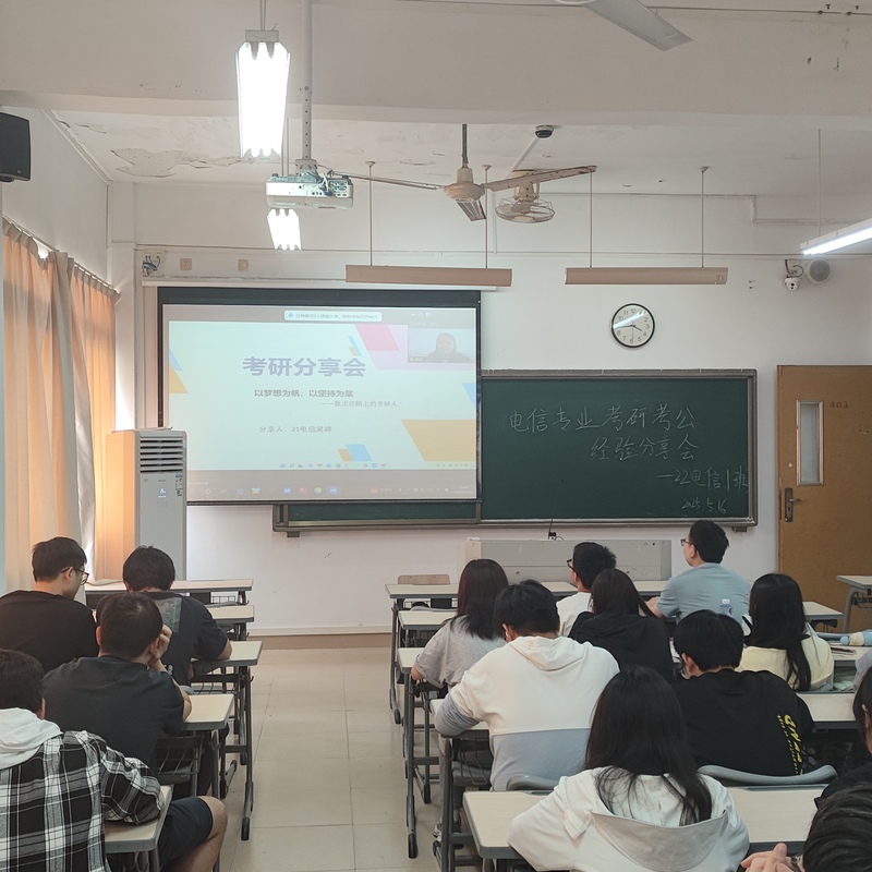 为助力2026届电信专业学子明确未来方向,提升考研考公备考效率,2025年5月16日下午,我院电子信息科学与技术专业在理工楼403教室举办考研考公经验分享会。电信专业辅导员黄祖榜、22级全体学生,共同聆听21级考研考公上岸毕业生线上分享宝贵经验。