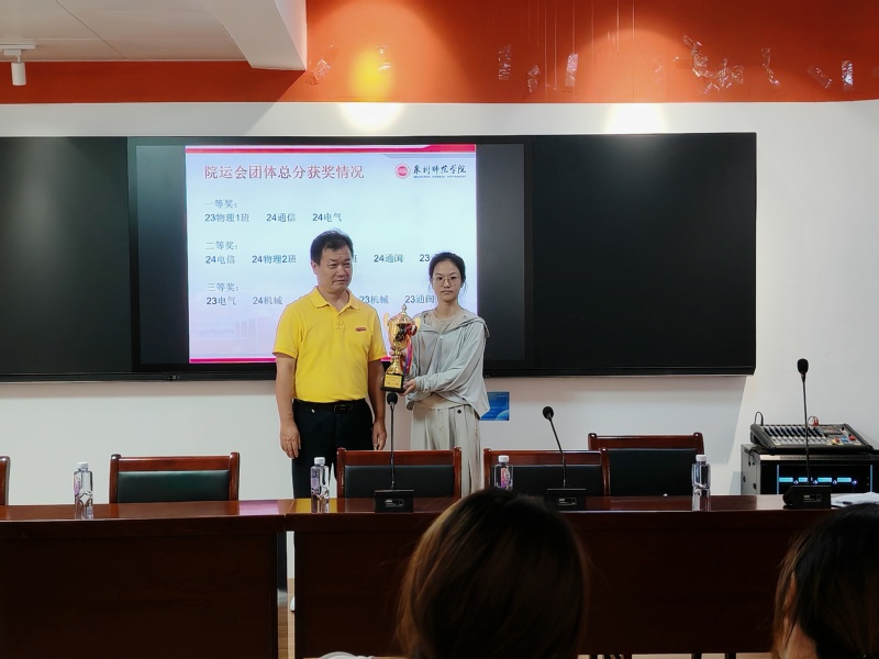 团体总分的颁奖将仪式推向高潮,在运动会筹备与比赛过程中,各班级积极组织、团结协作,充分展现了良好的班级风貌。荣获团体总分第一名的23物理1班代表上台领奖时,全场响起热烈的掌声。