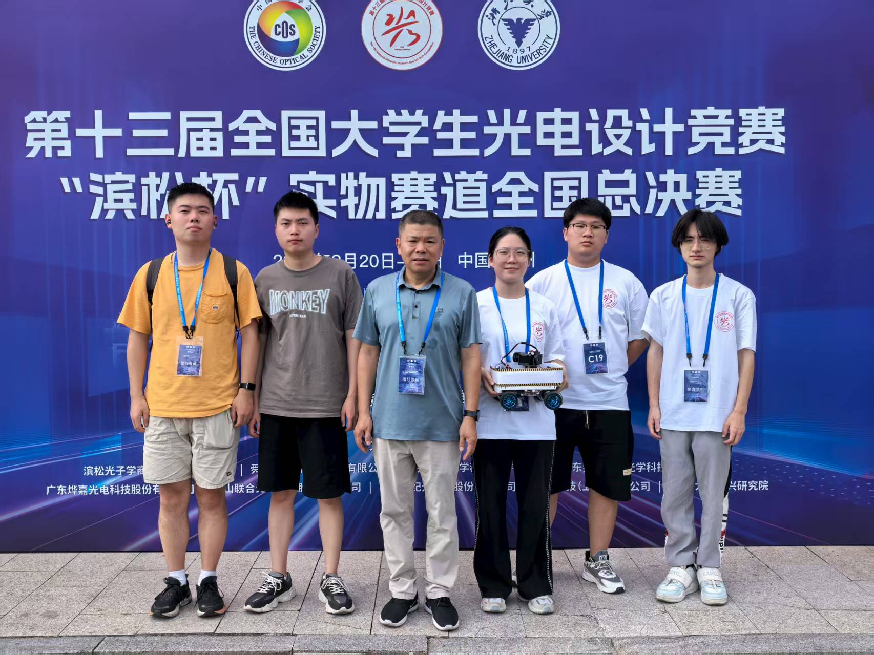 全国大学生光电设计竞赛由中国光学学会主办,并入选全国普通高校大学生竞赛排行榜,是光电领域最具影响力的大学生学科竞赛之一。本届大赛以“光启智创,逐梦未来”为主题,由浙江大学承办,共吸引全国7大赛区300余所高校的3000余支队伍、万余名师生参与。其中,来自82所高校的168支队伍晋级“滨松杯”实物总决赛。我校参赛团队最终荣获全国二等奖一项。