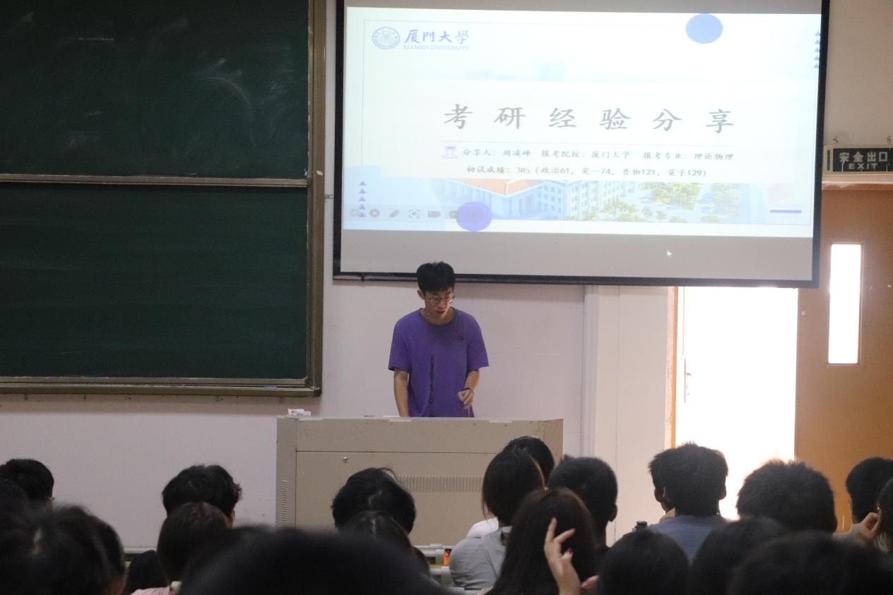 为帮助学生明确考研目标、掌握科学备考方法,9月25日15:00,我院在理工218教室举办优秀校友考研经验分享讲座。本次讲座特邀2020级物理学专业校友刘凌峰主讲,他以优异成绩成功上岸985高校厦门大学,其备考经验具有极强的针对性与参考价值。