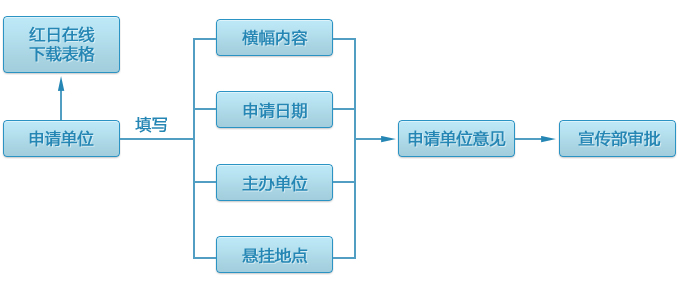 1、申请悬挂横幅的单位为校属单位,并加盖本单位公章后交校党委宣传部审批;