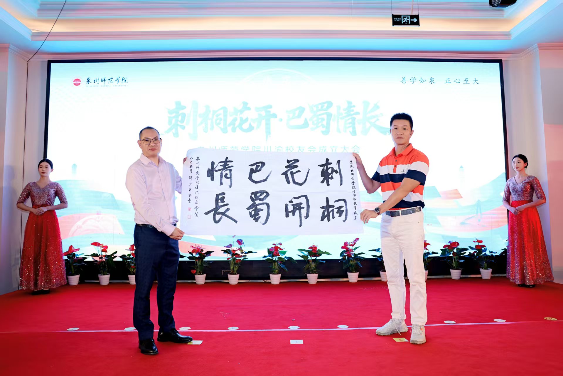 柯瑞清代表学校向川渝校友会的成立表示祝贺。他指出,校友是泉师历史的见证者、亲历者,也是泉师文化的传承者、发扬者,更是泉师发展的推动者、建设者。川渝地区作为我国西部腹地的经济文化重镇,历来是我校校友创新创业的热土。校友们用实干诠释了“泉师人”的责任与担当,为川渝地区的教育振兴、经济发展、文化繁荣作出了重要贡献,也为母校赢得了良好声誉。他希望川渝校友会能成为“凝聚校友的港湾”,搭建常态化交流平台,传递母校动态,分享校友资讯;成为“赋能发展的桥梁”,积极整合资源,为母校与川渝地区的交流合作搭建新的桥梁,打造“校友经济”品牌,实现“校友+母校+地方”的共赢格局;成为“文化传播的使者”,发扬“敢为人先、爱拼敢赢”的泉州精神,传承“善学如泉、正心至大”校训精神,以更好的业绩、更大的成果回报母校、回报社会。