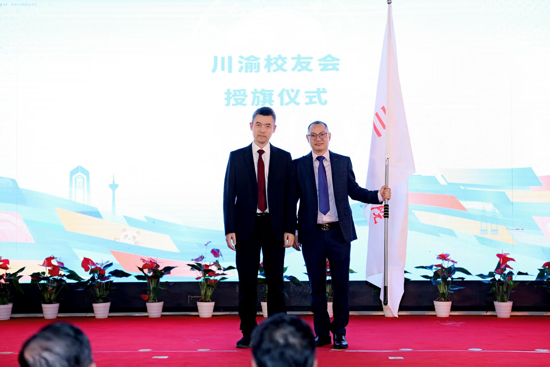 赖瑞拥代表兄弟校友会致辞,对川渝校友会成立表达祝贺,表示将联合学校各地区校友会互通资源、探索合作、凝聚合力,为母校事业发展贡献力量。
