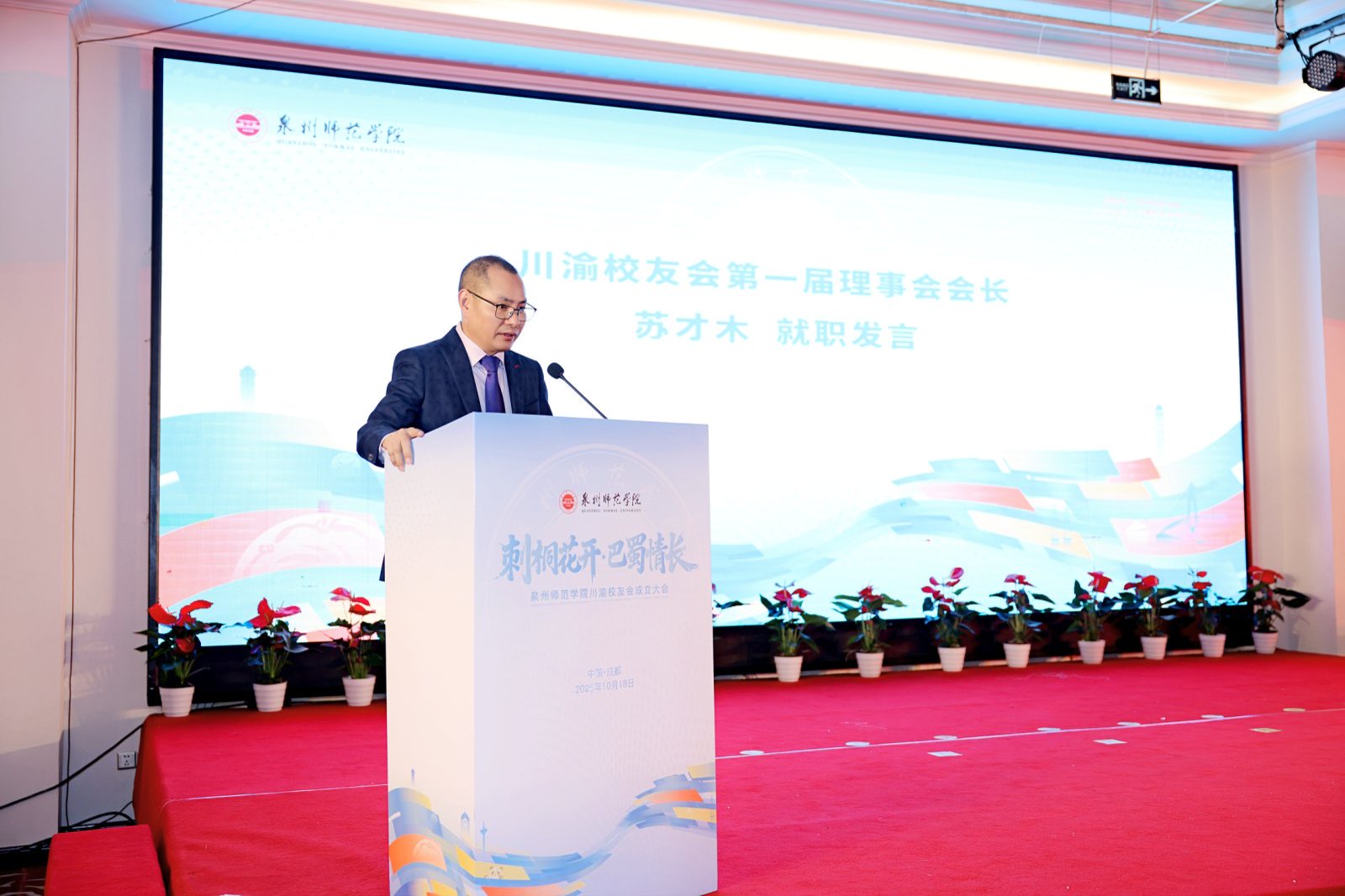 新当选会长苏才木在就职发言中代表川渝校友会第一届理事会表示,将为广大校友们搭建交流学习、凝聚智慧、共同发展的平台,积极发挥纽带作用,紧密连接母校,汇聚校友智慧与力量,成为校友们温馨、幸福的家园,为母校建设特色鲜明的一流应用型大学添砖加瓦,让泉师校训精神在巴蜀大地熠熠生辉!