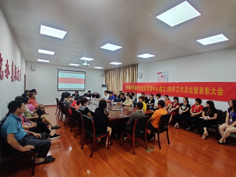 7月20日下午,学生宿舍管理中心在办公二区二楼会议室召开学生宿舍管理中心成立一周年工作总结暨表彰大会,学生宿舍管理中心全体成员、“菜鸟驿站”公司代表孙光参加会议。会议由学生宿舍管理中心副主任洪小华老师主持。