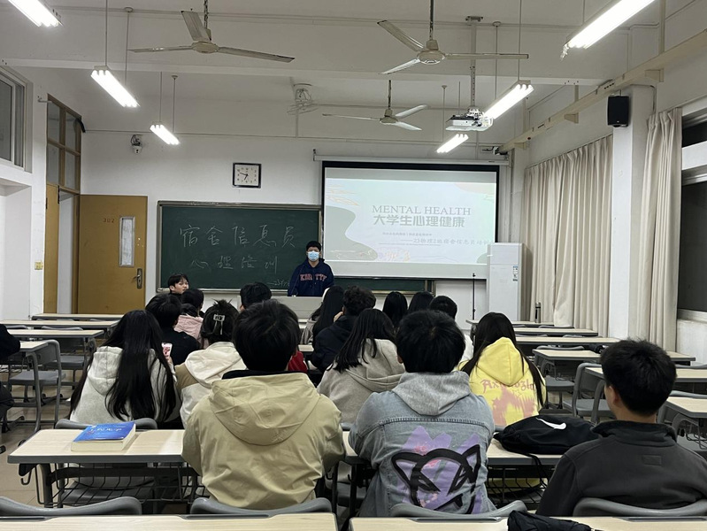 各班级心理委员充分运用校第32期朋辈心理委员培训所学知识,培训班级宿舍信息员。从常见心理障碍的识别、心理危机识别与干预、如何策划一场心理团辅活动等方面向心理宿舍信息员介绍心理健康相关知识,从朋辈帮助的角度深入浅出地解释心理宿舍信息员的角色和任务,帮助同学在日常生活中识别需要重点关注的群体并采取正确的措施。
