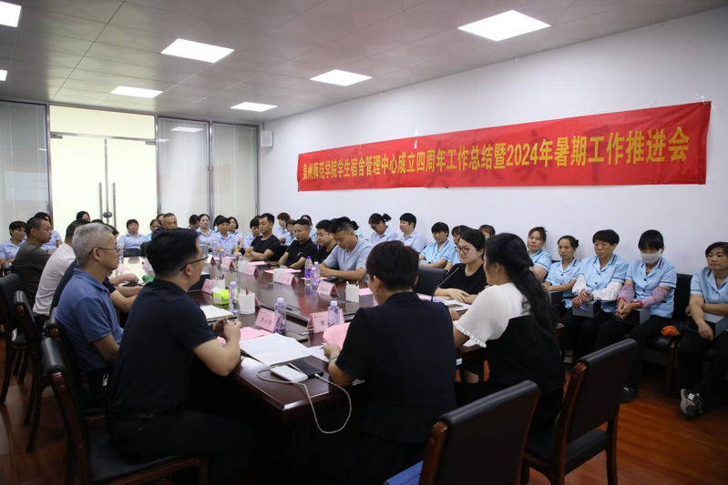 7月2日下午,学生宿舍管理中心召开成立四周年工作总结表彰暨暑期工作推进会,武装部部长、学工部副部长、学生宿舍管理中心主任黄志梅,后勤管理处副处长、学生宿舍管理中心副主任王莲芳,学工部、后勤处相关老师,学生宿舍管理中心全体员工,校友企业代表参加会议。