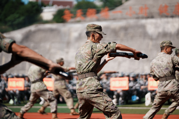 军训团团长李康洪希望参训学生发扬不怕苦、不怕累的精神,端正态度、互学互助,服从命令、听从指挥,刻苦训练,科学训练,安全训练,争当训练勇士,军中木兰。同时要求全体教官严以律己、树好形象,履行职责、遵规守纪;按纲施训、循序渐进,以饱满的热情和昂扬的斗志投入到军训任务,并祝愿军训圆满成功。