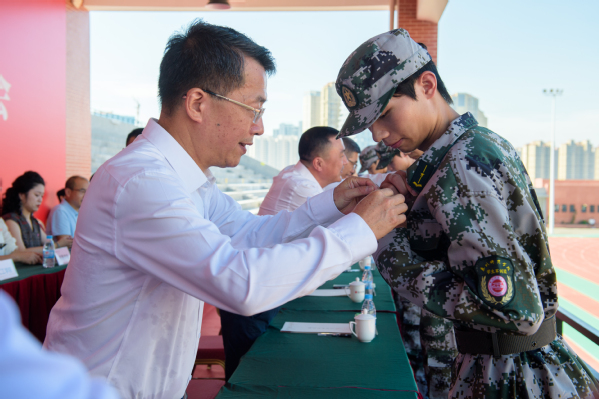 典礼上举行了佩戴校徽仪式,校领导为新生代表佩戴校徽。全体新同学也纷纷戴上校徽,正式成为“泉师人”。同时,军训教官还进行了军训科目演示。