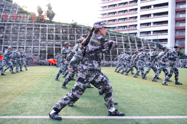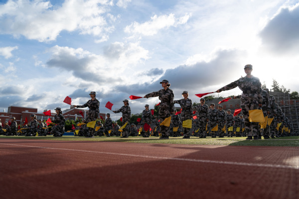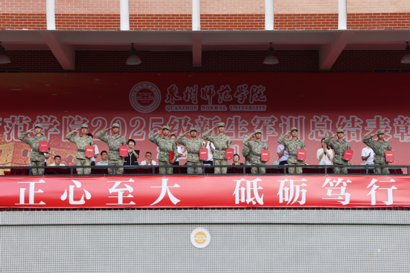 9月22日下午,我校2025级新生军训会操暨总结表彰大会在第二田径运动场举行。