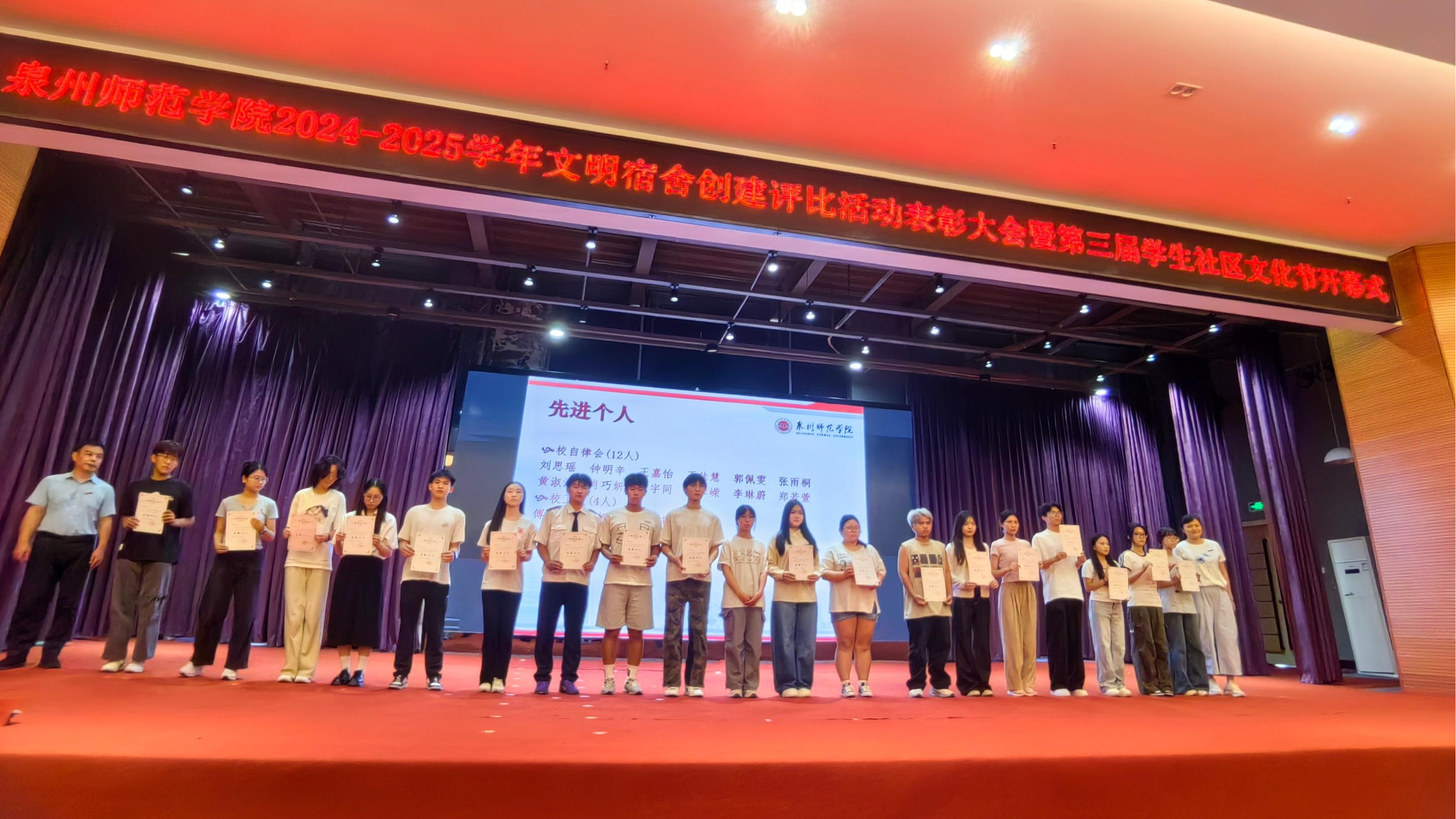 10月16日下午,我校2024-2025学年文明宿舍创建评比表彰大会暨第三届学生社区文化节开幕式在特教大楼第一学术报告厅举行。学工部、保卫处、校团委、后勤管理处等部门负责人、二级学院辅导员、学生社区员工代表、学生自律会骨干及获奖学生代表等350余人参加活动。