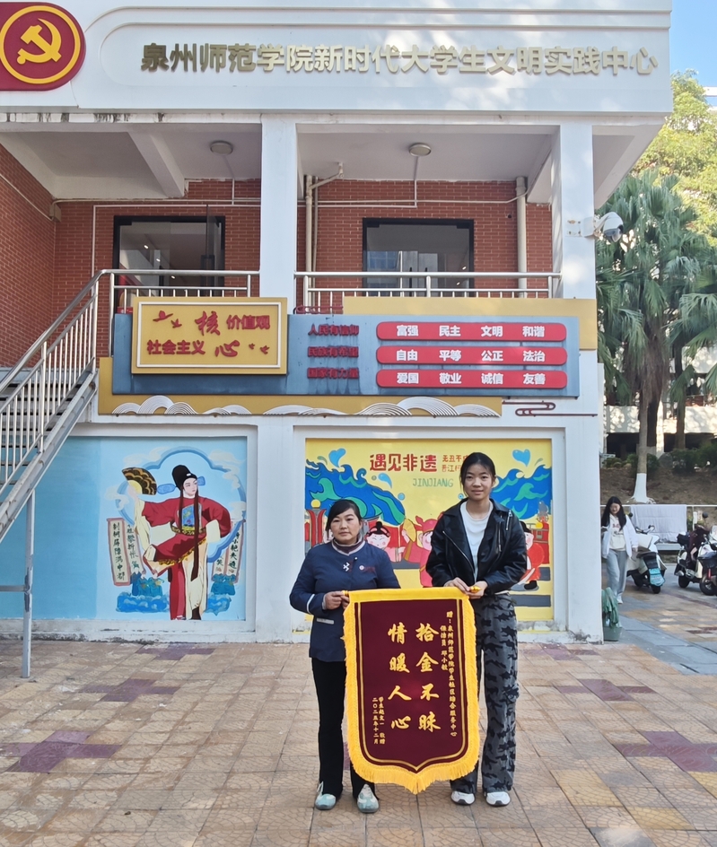 12月29日,我校在学生社区文馨苑13号楼新时代大学生文明实践中心举行表彰会,表彰拾金不昧的社区保洁员邓小敏。后勤管理处、学生工作部相关教师,社区员工代表以及失主赵同学(海食学院24级食品科学与工程专业学生)共同参与。现场温馨感人。