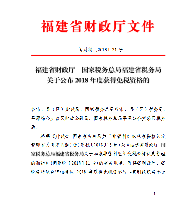 2018年经福建省级财税部门确认获得免税资格的非营利组织名单.xlsx