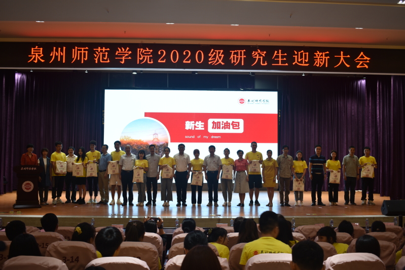 全体新生满怀着对未来学习生活的憧憬和信心,全体研究生新生起立举起右手庄严宣誓:“我承诺:遵守学术规范,坚守学术诚信,恪守学术道德,维护学术尊严,抵制学术不端,争做优良学风建设的践行者。”最后,与会领导为2020级研究生发放新生“加油包”并合影留念。