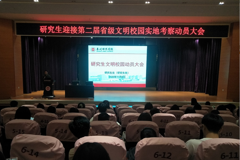 11月8日,我校在特教大楼第一学术报告厅召开研究生迎接第二届省级文明校园实地考察动员大会,会议由研究生辅导员赖鸿老师主持,研究生处部分老师及全体研究生出席动员大会。