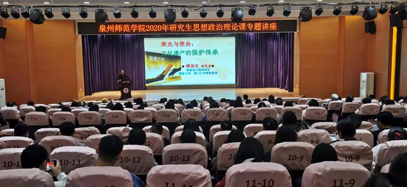 12月24日,福建省文化和旅游厅党组成员、福建省文物局局长、福建省委教育工委思想政治理论课特聘教授傅柒生莅临我校,为全体研究生作题为“荣光与使命:文化遗产保护传承”的学术讲座,讲座由副校长杨晓翔主持,研究生党总支全体党员、全体研究生参加。