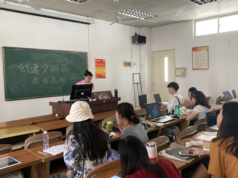 为进一步落实市委市政府关于创建全国文明城市的部署要求,引导研究生养成讲文明、讲卫生、讲秩序、讲公德的良好习惯,积极参加文明城市和文明校园创建活动,5月18日至20日,我校研究生各班开展 “创建文明城 你我共参与”为主题的团日宣传教育活动。