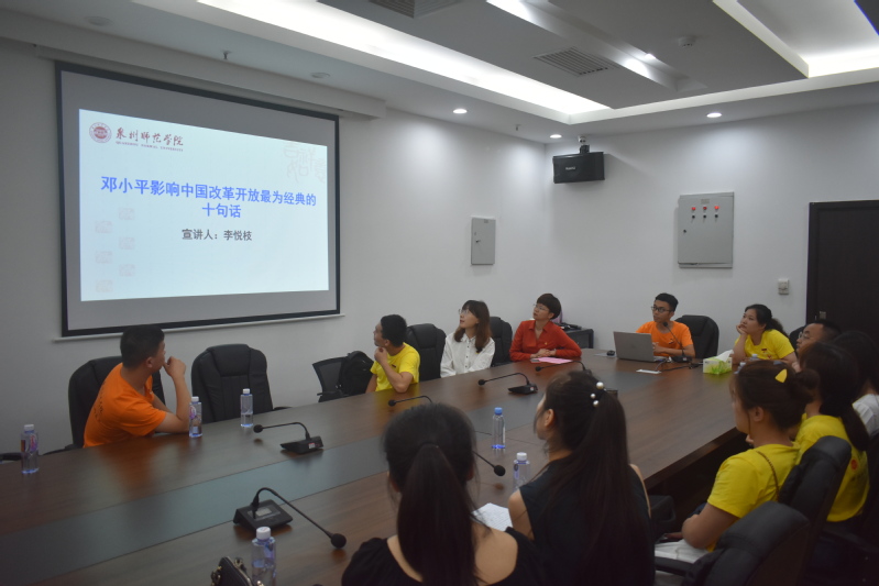 为庆祝中国共产党成立100周年,深入贯彻落实习近平总书记在党史学习教育动员大会上的重要讲话精神,切实做好党史学习教育工作,经研究生党总支批准,成立了以研究生党员骨干为主的研究生党史学习教育宣讲团。6月3日下午,研究生党史学习教育宣讲团成员走进晋江市展馆开展党史学习教育宣讲,研究生党总支部分教师党员、各党支部委员及部分研究生党员代表出席宣讲会。