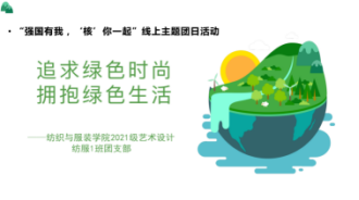 4月21日下午,2021级艺术硕士纺服1班开展“强国有我,核你一起——追求绿色时尚,拥抱绿色生活”主题团日活动。