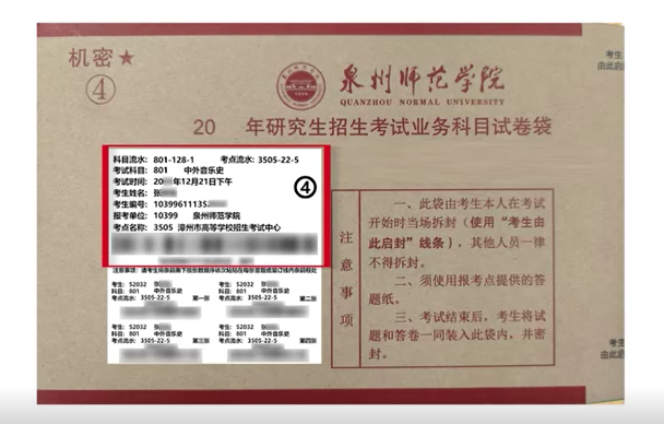 考场会为各位考生发放自命题答题纸,其左上角设有条码粘贴区域,并且带有序号。同时,每位考生将会获得带有答题纸条形码的试题信封。