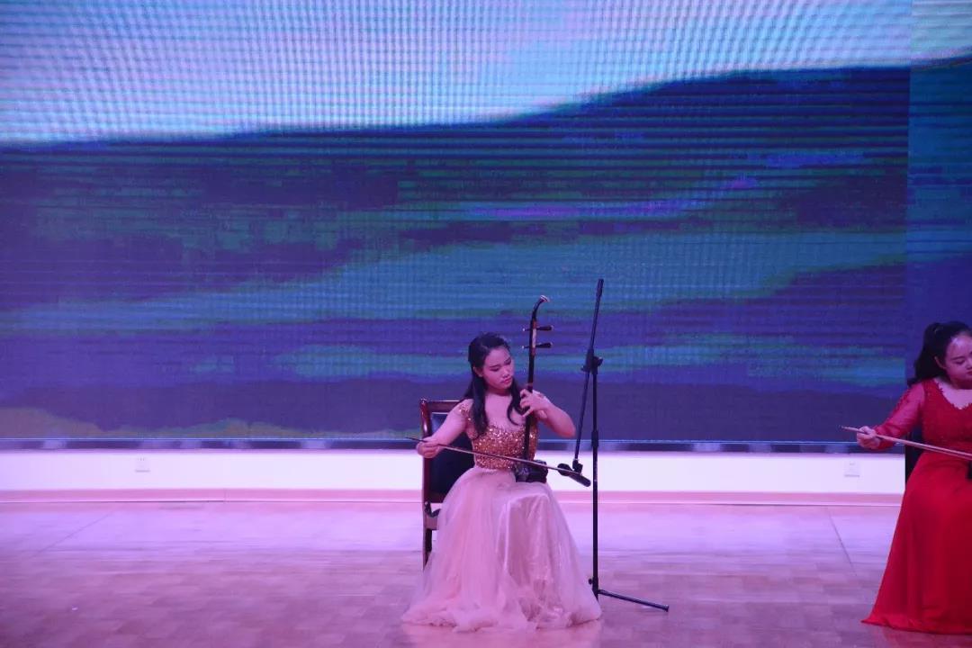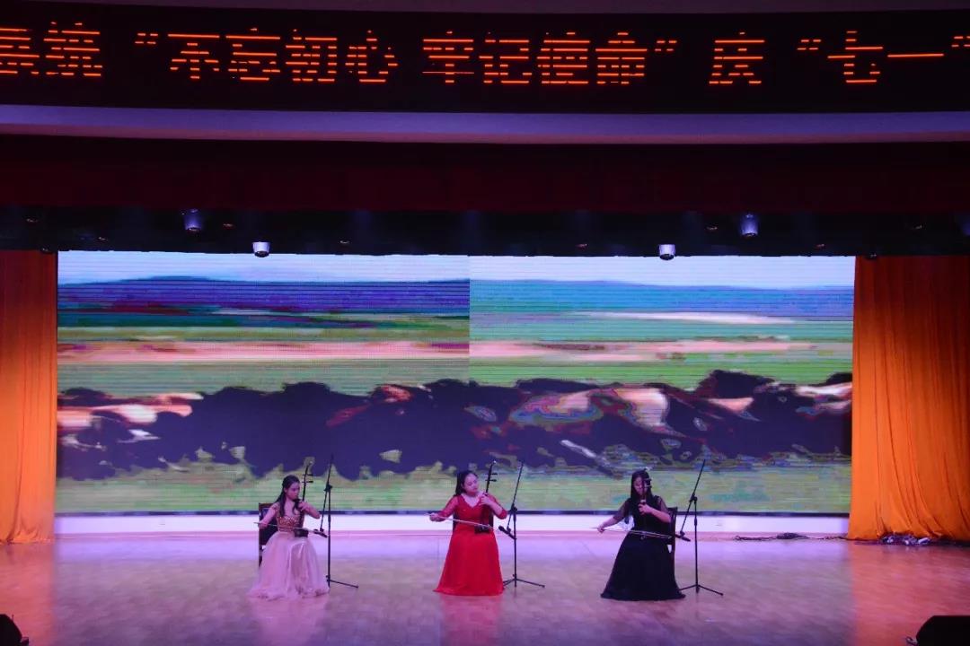 本次晚会,我院选送了多个优秀节目参演,展示出了我院学生扎实的专业基础和优秀的专业风采。我院的胡祎珂、林巧静、苏晨歆三位同学带来的二胡合奏《新赛马》,描绘出了一幅奔腾激越、纵横驰骋的赛马画面,乐曲铿锵有力的旋律正如建党信念一样坚定不移,蓬勃不息;由赵子萱同学演唱的《我的江汉大平原》描绘了江汉平原的自然景观和改革开放后的繁荣景象,激昂的旋律和节奏将晚会推向高潮,赢得了在场观众们的喝彩;舞蹈《爷爷们》以草原上的牧民爷爷们收听收音机里播报党的十九大胜利召开的新闻为线索,将传统的蒙古族舞蹈与美国爵士乐以及阿格尔母亲演唱的鄂尔多斯民歌《玛奈蒙格乐》巧妙地融合在一起,我院的林嘉腾、马金涛等同学通过舞蹈展现了牧区的生产生活现状和牧区老人们积极向上的精神面貌,以及在党领导下的新时代草原景象;跳跃的音符演绎着青春的活力,动人的舞步展示着青春的风采,由郭芳婷、赵海钦等同学表演的健美操《青春》,用活泼的舞步展示了当代大学生的团结一致、奋发向上的精神面貌,贯彻了习近平总书记对大学生“爱国、励志、求真、力行”的四项基本原则。不忘誓言,做一个四讲四有合格党员,在晚会的最后,现场全体党员起立重温入党誓词。