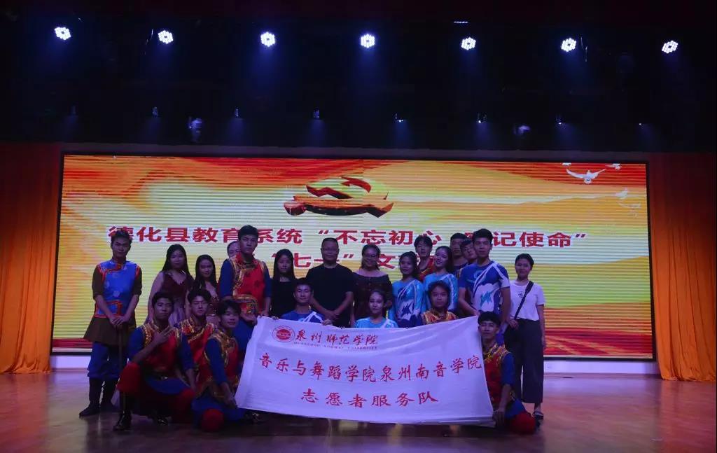 为庆祝建党97周年,深入贯彻落实党的十九大精神,2018年6月30日,由中共德化县教育系统委员会主办,中共泉州师院机关第六党支部委员会、中共泉州师院音乐与舞蹈学院学生党支部委员会、中共德化县教育局支部委员会承办的“不忘初心 牢记使命”庆“七一”文艺晚会于德化职校礼堂成功举办。