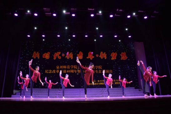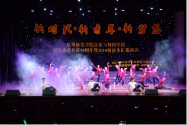 2018年10月21日晚,音乐与舞蹈学院于陈祖昌大礼堂成功举办“新时代・新青年・新梦想”——纪念改革开放40周年暨2018级新生汇报演出。2018级全体同学均参与了此次演出,为大家带来了一场精彩纷呈的视听盛宴。