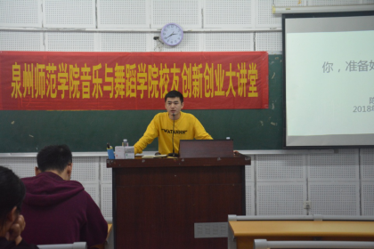 2018年11月9日,我院于教室E102开展了“英国威廉希尔公司官网音乐与舞蹈学院校友创新创业大讲堂”的活动。出席本次活动主讲的是我院2017届音乐学毕业生陈志强,陈志强同学为厦门市思明区艺阳天教育培训学校副校长,邀请他出席此次大讲堂的目的是为了提高同学们积极创新的精神,促进开发思维的意识,更好的为发展之路做下铺垫。