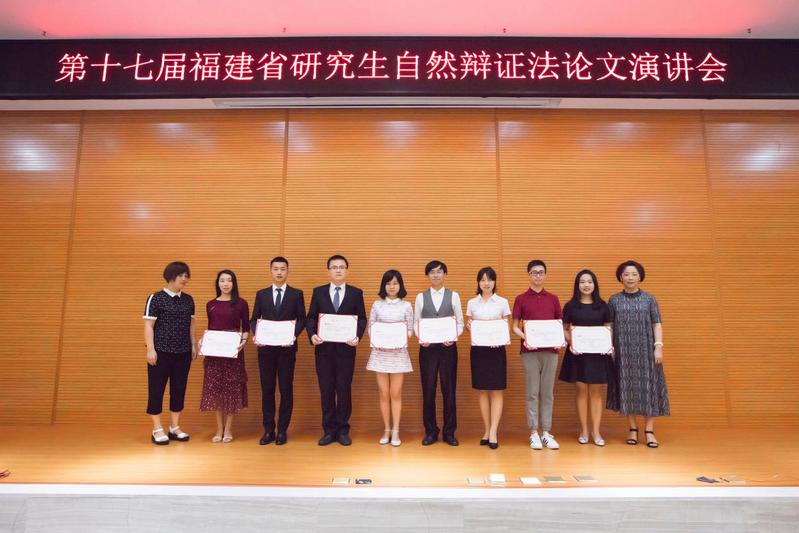 2018年5月25日—27日,2018年第十七届福建省研究生自然辩证法论文演讲会在我校成功举办。经过一天紧张激烈的角逐,我校2016级音乐领域文化产业与南音推广方向研究生庄晓卉获一等奖第一名,陈敏红教授被评为“优秀论文指导老师”,同时我校荣获“优秀组织奖”。